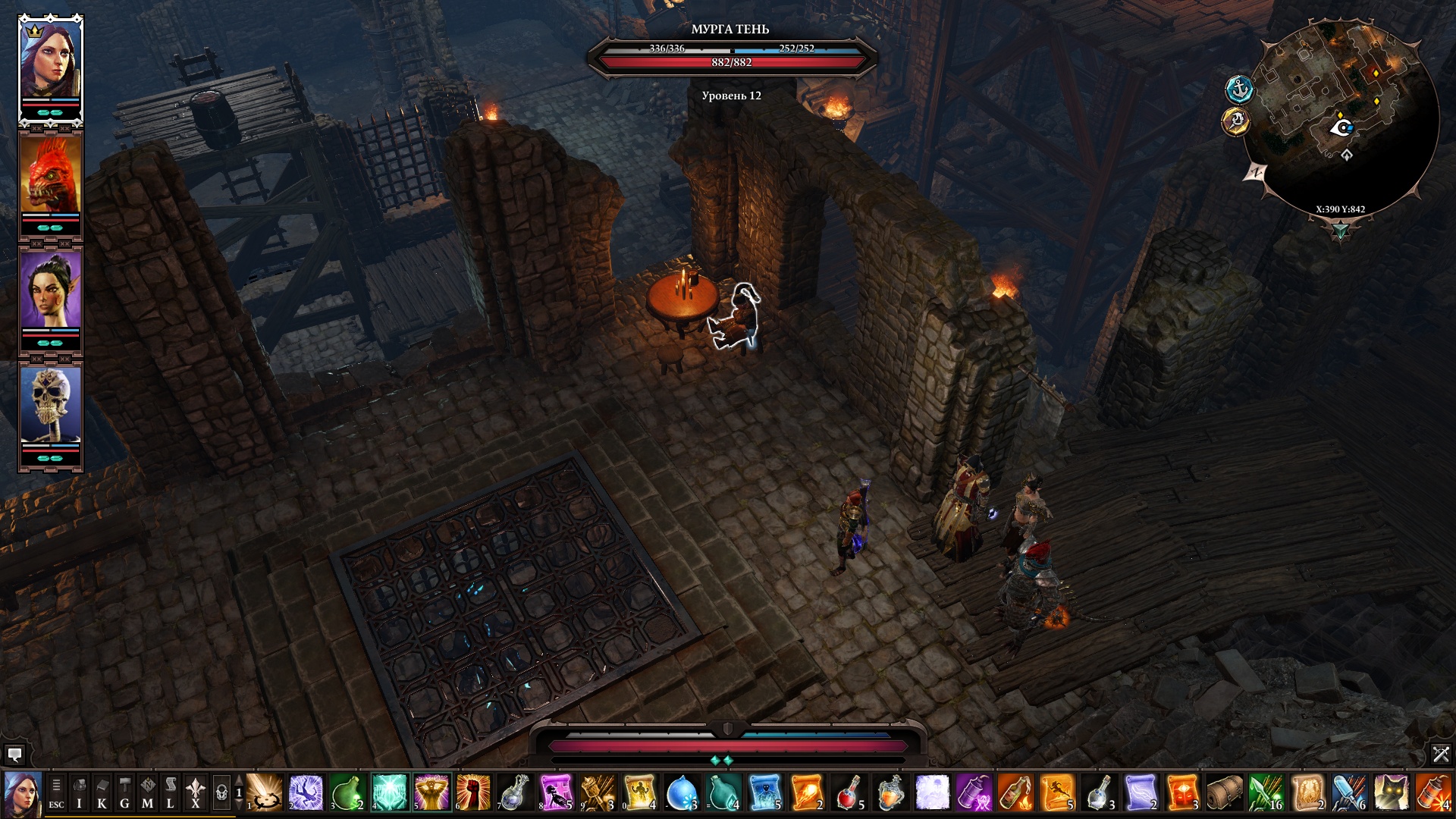 После победы над охраняющими врагами для обоих люков доступа в подземелья отдайте одну из пирамид компаньону и отсоедините их от группы, затем отправьте их вниз по одному из люков, а остальную группу к другому люк (в этой группе ДОЛЖЕН быть союзник или персонаж с навыком/свитком телепортации). Держите группу в режиме скрытности у входной лестницы и отправьте только одного, чтобы прочитать надгробную плиту, затем отправьте их обратно ко входу, а также включите скрытность, что касается одинокого союзника в другом подземелье, вы можете заставить его выполнить шаги, чтобы вызвать » Таинственный противник».