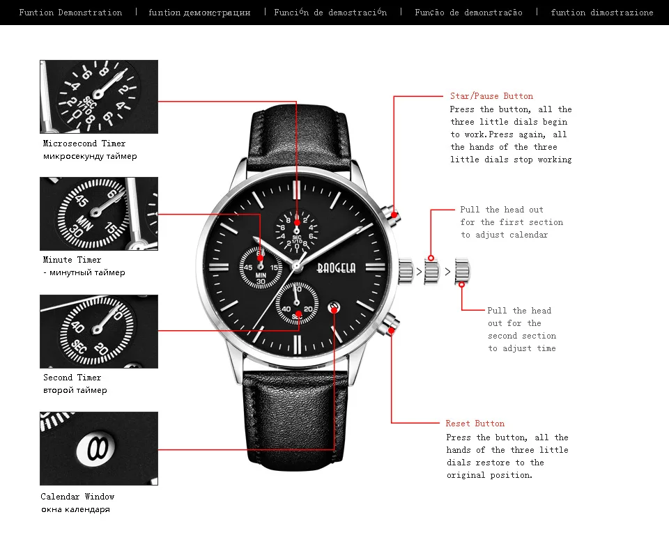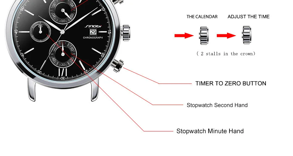 Хронограф имеет встроенную в систему функцию секундомера, позволяющую пользователю отслеживать прошедшее время. Он разработан с кнопкой сброса, так что пользователь всегда может снова начать измерение времени с нуля, когда захочет.