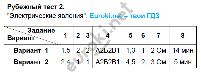 Тест по физике Электрические явления 8 класс с ответами. Тест включает в себя 9 заданий с выбором ответа.