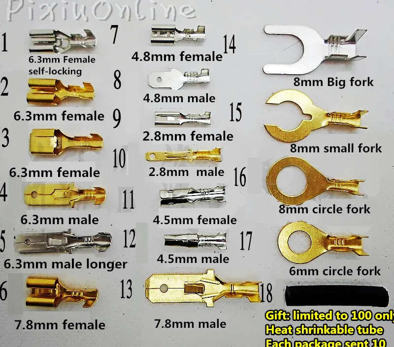 16-14 AWG, неизолированные, клеммы с флажком