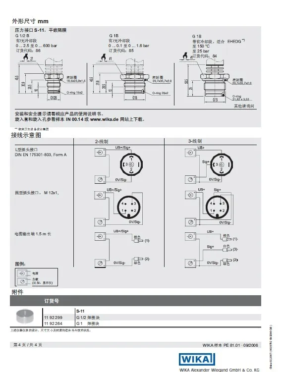 Датчик давления Wika S 11 (Технический паспорт PE 81.020)