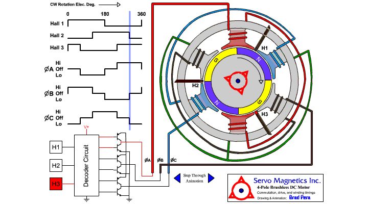Вращающейся частью привода или ротором является электрический магнит, который и передает вырабатываемое магнитное поле на статор. Это – внешняя часть устройства, состоящая из трех катушек с проводами.