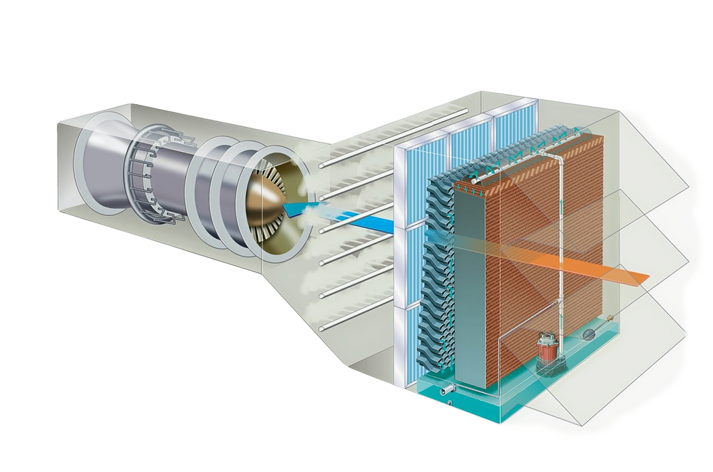 Наиболее крупные частицы пыли за счет инерции пролетают мимо фильтрующих панелей и попадают в расположенные за фильтрами вертикальные каналы, в результате снижается пылевая нагрузка на фильтрующий материал (до 90 % и более по массе во время песчаных бурь). Часть забираемого воздуха (обычно 6–10 % от общего объема) не проходит через панели, а вместе с пылью попадает непосредственно в вертикальные каналы и с помощью вентиляторной системы пылеудаления возвращается обратно в атмосферу вдали от зоны воздухозабора.