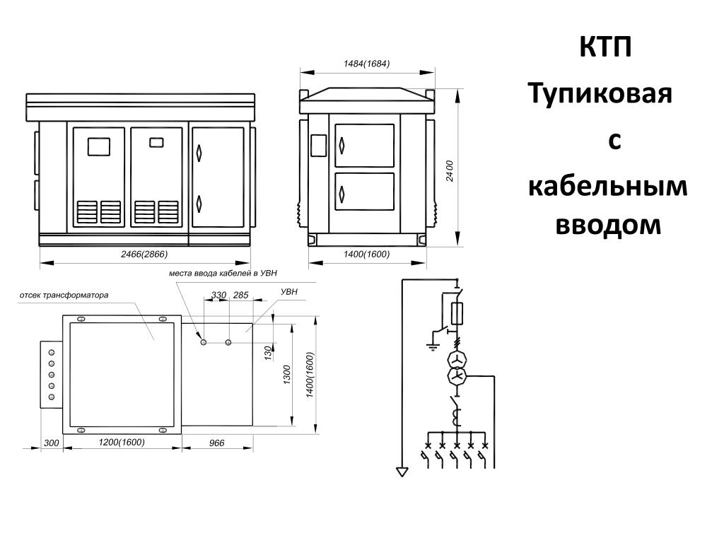 Поставляются КТП полностью собранными или же в виде блоков, которые можно собрать на месте и внутри которых находятся уже все коммутационные аппараты. КТП имеют вводы в исполнении категории А и Б по ГОСТ 9920, это воздушные вводы с, которые имеют ограничители перенапряжения со стороны НН и ВН.
