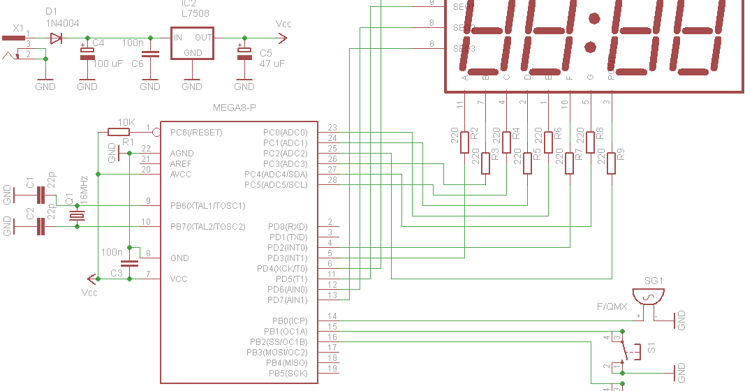 Рассмотрим, как сделать таймер своими руками на микроконтроллере ATmega8, хотя код довольно просто адаптировать и для МК AVR других серий. Электронный таймер нужное устройство во всех областях, где требуется выполнение определенных действий через конкретный промежуток времени. Чтобы не повторяться схему подключения четырехразрядной динамической индикации и основу кода мы возьмем из предыдущей статьи, в которой подробно описаны все элементы кода и принцип работы динамической индикации.