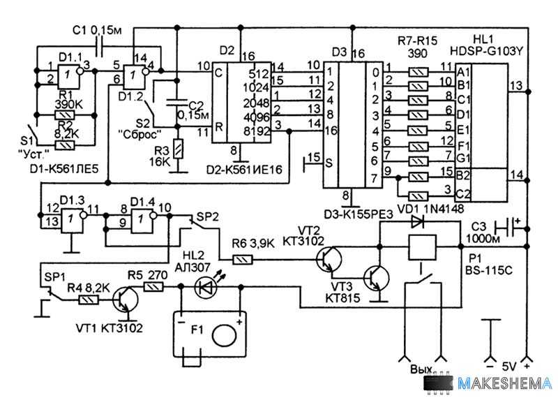 Диоды на контактах 3 и 11 микросхем удерживают микросхемы в заблокированном состоянии до тех пор, пока цепь не будет выключена и включена для запуска следующего цикла.
